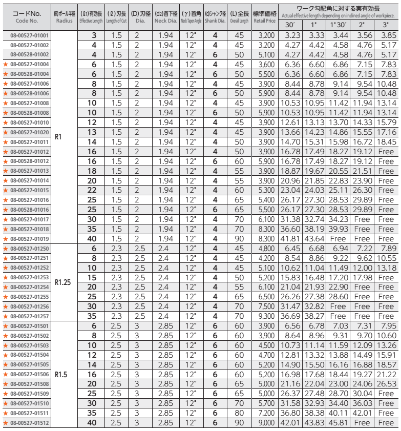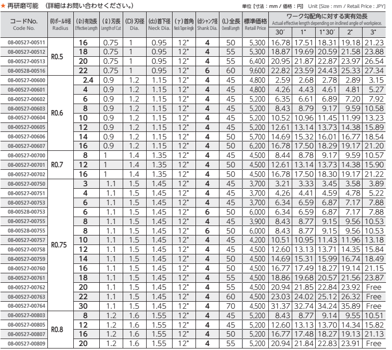 ● Lớp phủ MUGEN-COATING PREMIUM cho thép cứng và thiết kế mới độc đáo vượt trội ngăn ngừa sứt mẻ và tạo ra bề mặt hoàn thiện tuyệt vời. ● Áp dụng cho thép cứng lên đến 68HRC. ● Tổng số 224 kích thước!